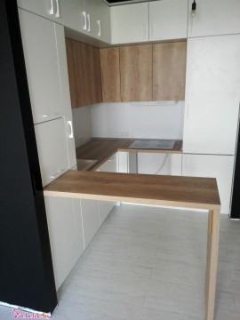 Угловые кухни имеют вытянутую, квадратную форму и отлично подходят для маленьких квартир. Кроме того, на них максимально комфортно и близко друг от друга располагаются плита, холодильник и мойка.
