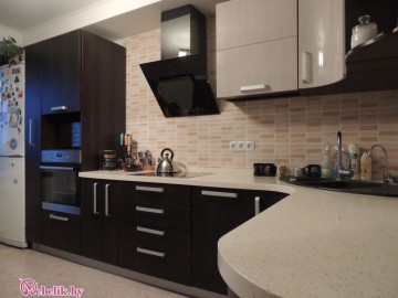 Наш обзор начнем с кухни. Так как ее площадь была немаленькой, то выбор вариантов был достаточно велик. Мы решили сделать основной упор в планировке на максимальной функциональности и удобстве в эксплуатации.