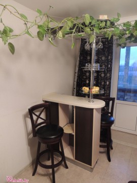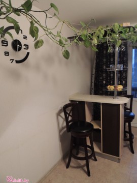 Верхние шкафчики мы сконструировали с использованием уже полюбившимся нашим клиентам надежных складных подъемных механизмов AVENTOS. Кроме этого мы не забыли создать небольшой, но удобный уголок для большой и дружной компании.